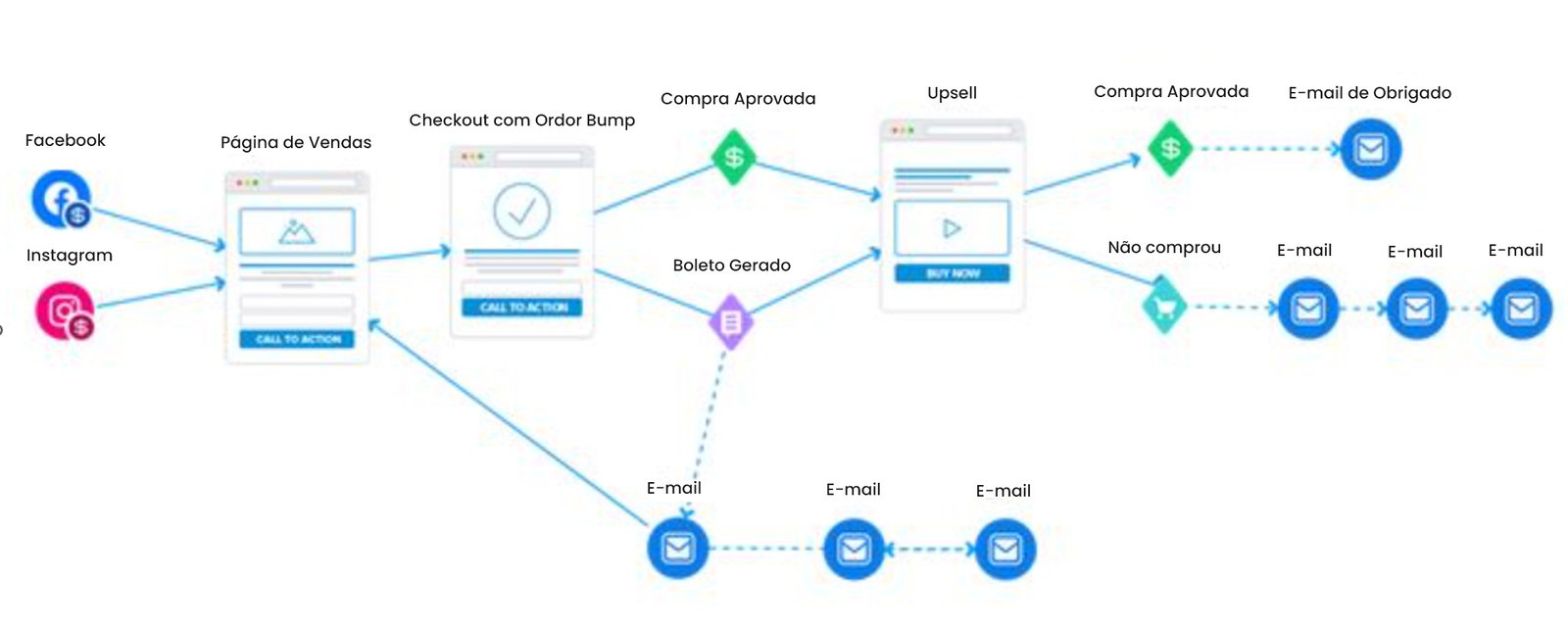 Tenha um funil de vendas personalizado para vender o seu produto ou serviço no mercado digital, gerando novos clientes com previsibilidade e lucro.